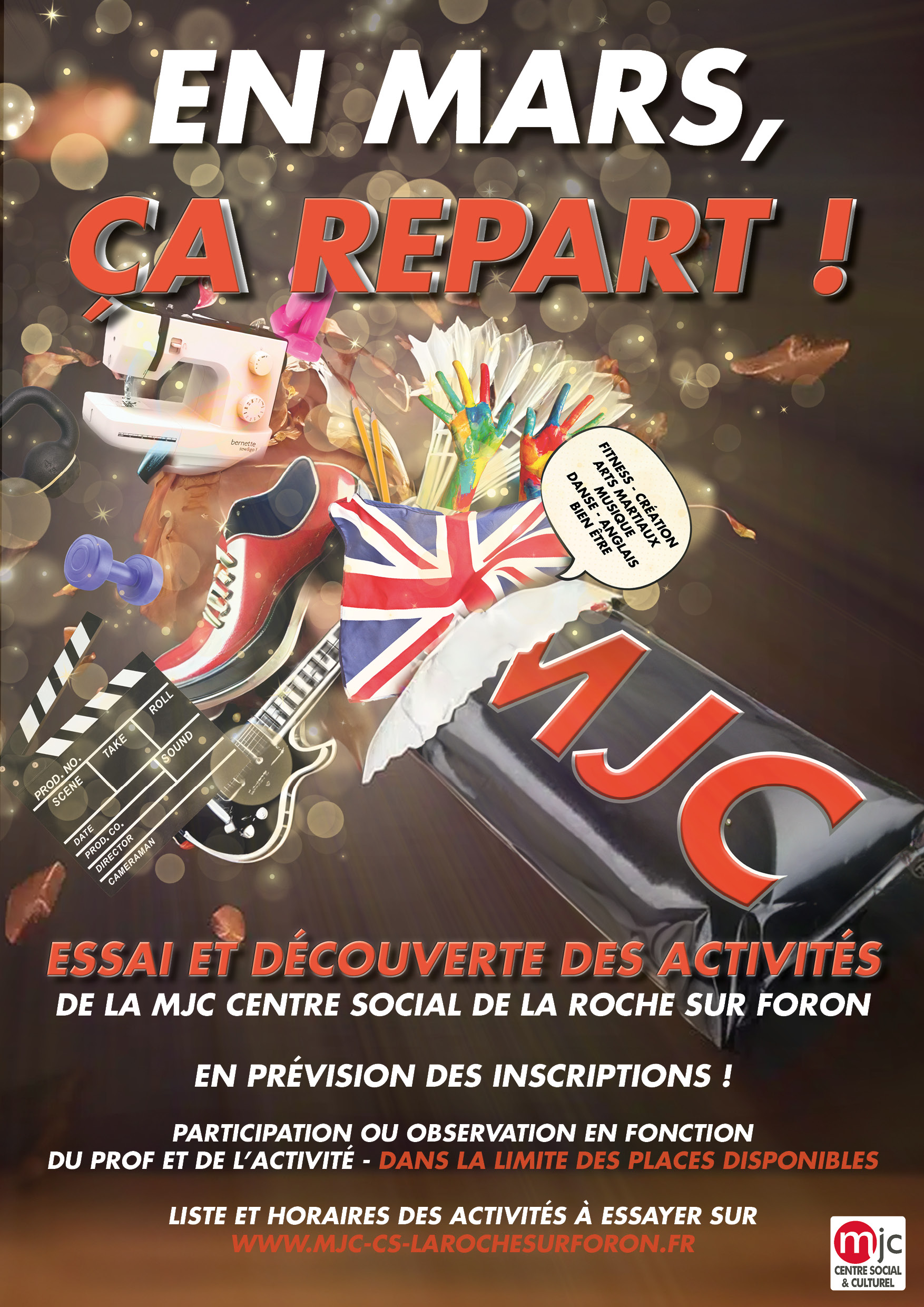 ACTIVITÉS ET HORAIRES : https://www.mjc-cs-larochesurforon.fr/activite-de-loisirs/