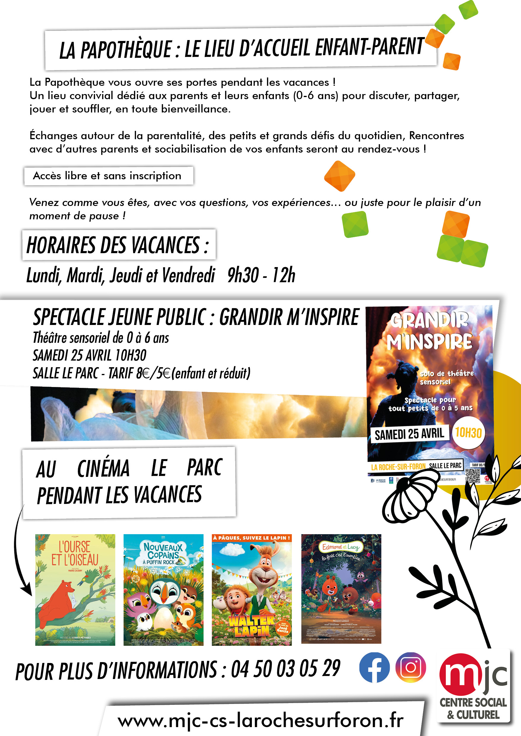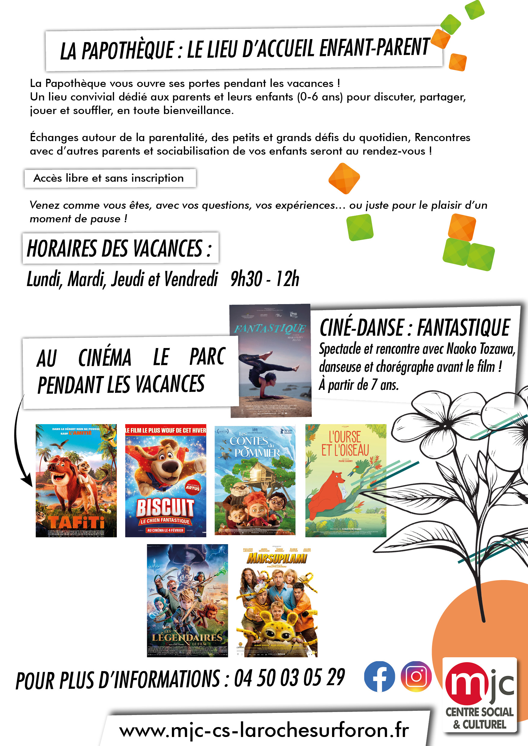 Lundi, Mardi, Jeudi et Vendredi 9h30 – 12h
