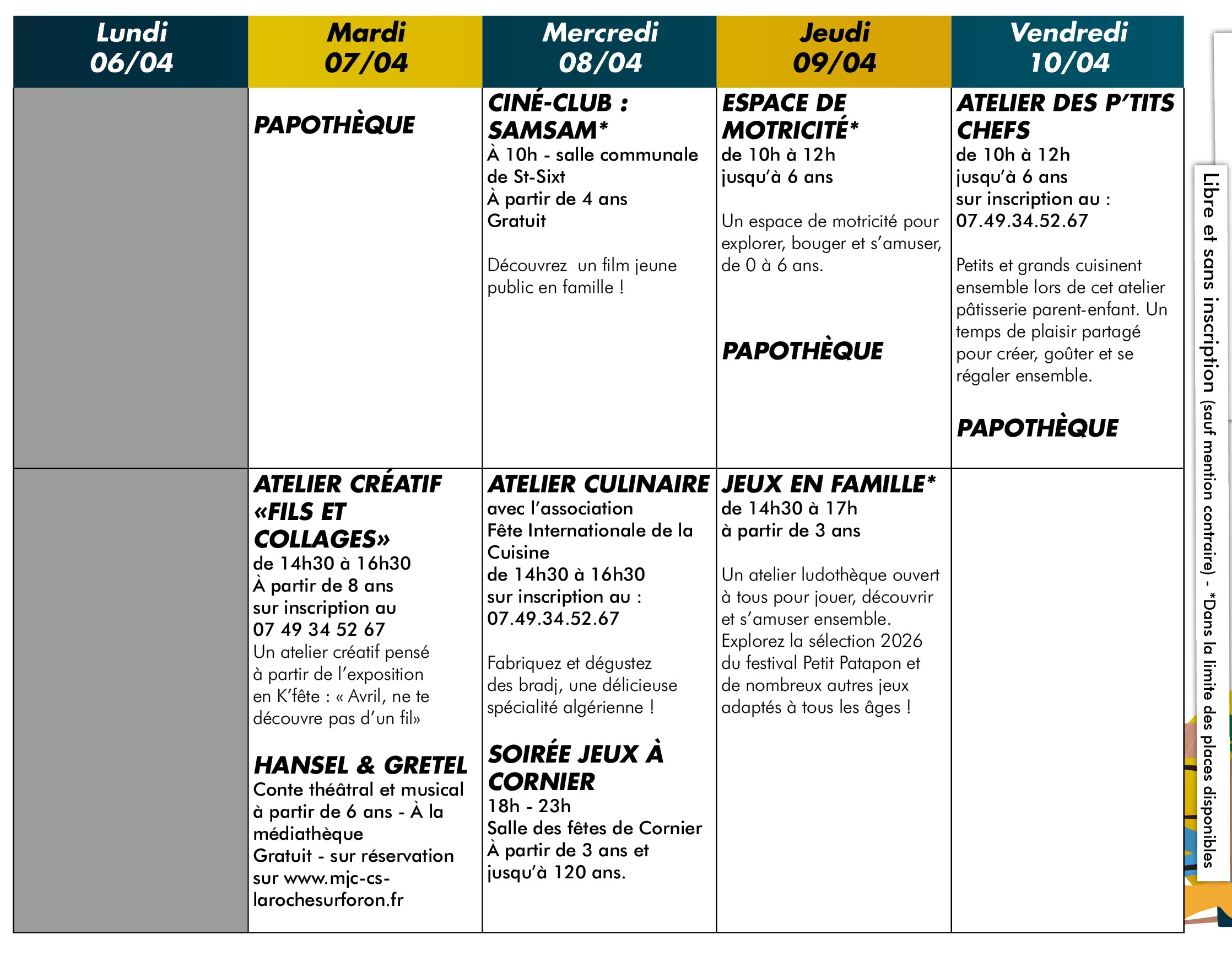 SEMAINE DU 06 AU 12 AVRIL