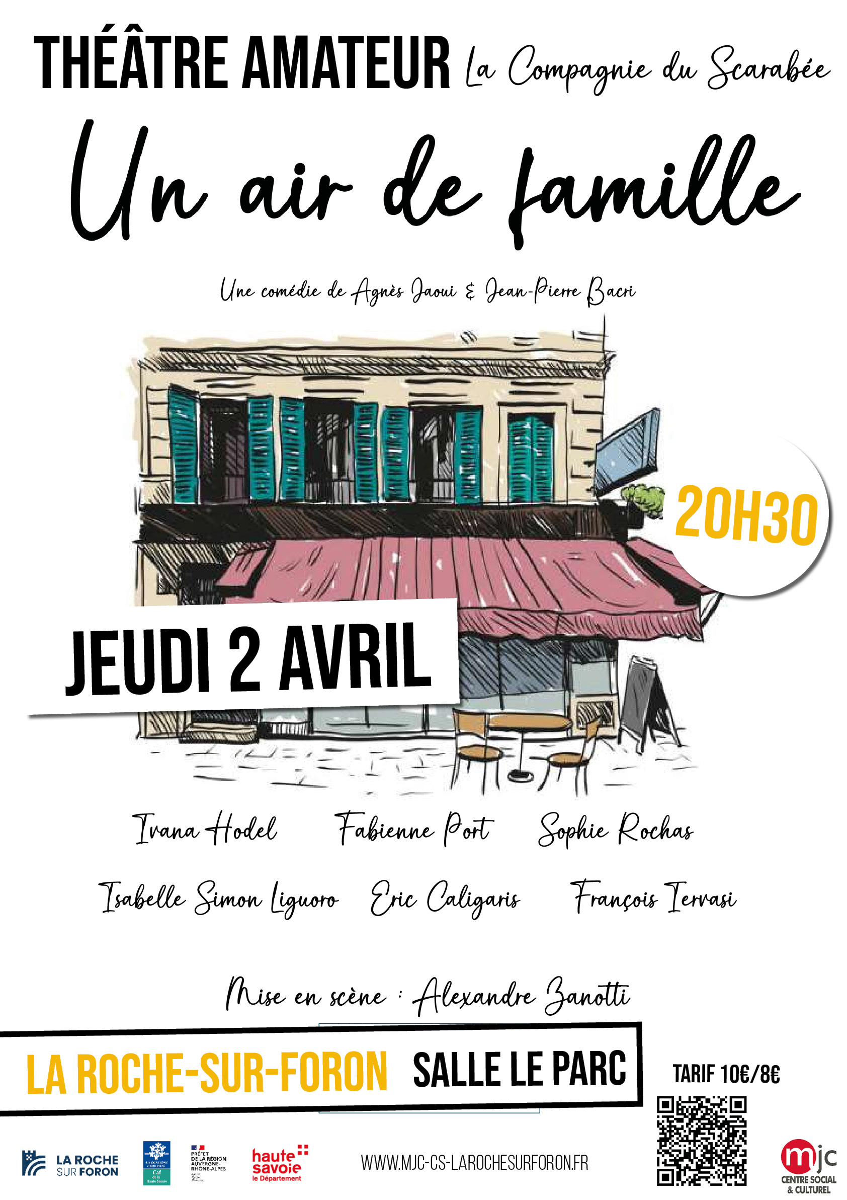 Avec Un Air de Famille, la Compagnie du Scarabée s’empare de l’irrésistible pièce d’Agnès Jaoui et Jean-Pierre Bacri. Ce spectacle offre un miroir hilarant et acide de nos réunions de famille. Entre non-dits, petites jalousies et grandes frustrations, les personnages s’entrechoquent dans un ballet savamment orchestré.